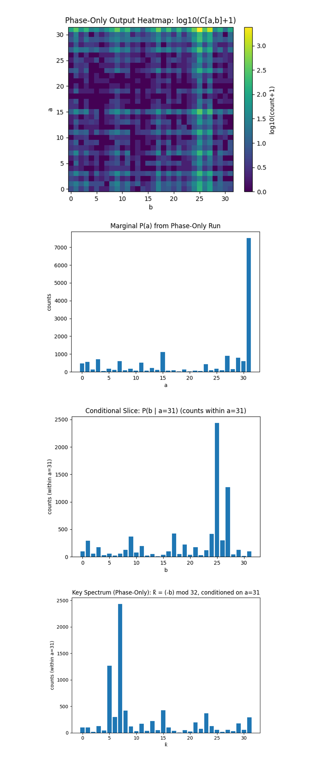 print(f"P(ideal peak a=31,b=25) = {C[A_TARGET,B_TARGET]/shots:.6f} (count={int(C[A_TARGET,B_TARGET])})")
